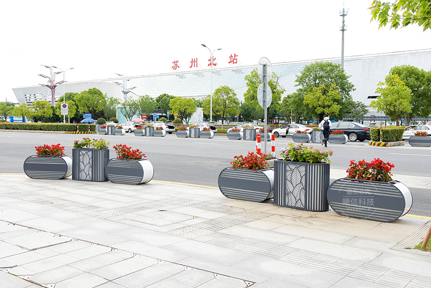 這款花箱采用鈑金材質,具有高承重、高強度、高硬度特點,實現了道路景觀的美觀與升級。